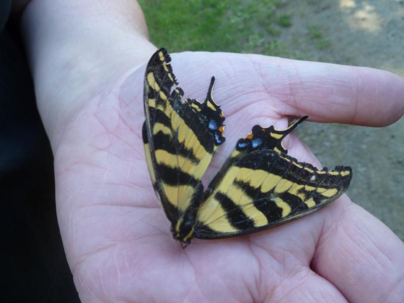 Heidi found the remains of a Canadian Tiger Swallowtail butterfly when we arrive at the Thyme Garden. The wings were so soft!